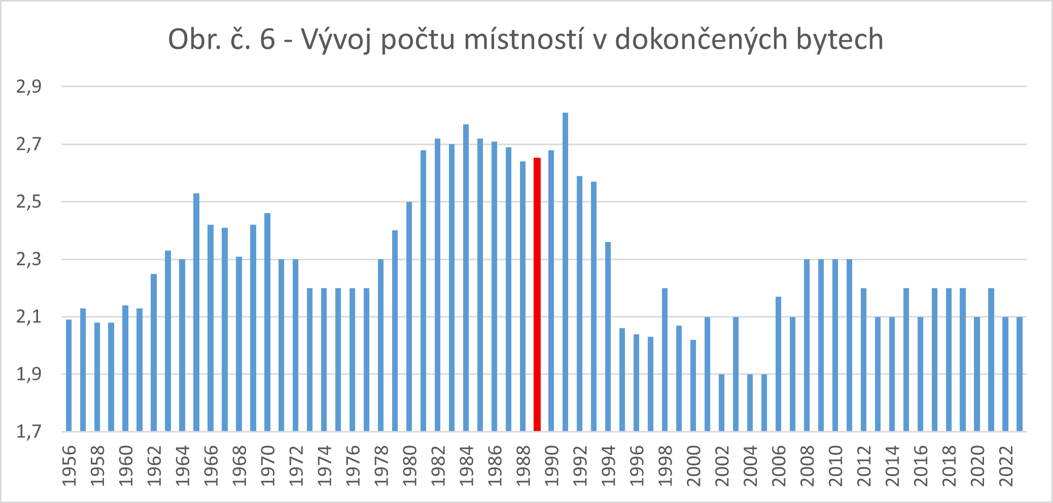 V posledním roce socialismu, v roce 1989, bylo dokončeno 58 583 bytů v bytových a rodinných domech. V celém Československu bylo toho roku odevzdáno 92 482 bytů. Česká republika se na tuto hodnotu už nikdy nedostala, přestože se mladí lidé stále potýkají s nedostatečným uspokojováním potřeby bydlení.